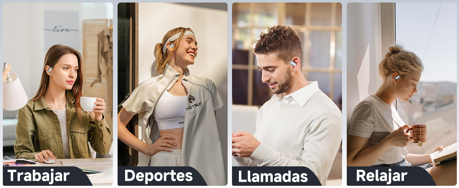• Diseño Inmersivo de Oreja Abierta:Los auriculares oreja abierta cuentan con un diseño ergonómico revolucionario, permitiéndote disfrutar de tu música favorita mientras te mantienes consciente del entorno. Con estos innovadores auriculares inalambricos bluetooth deportivos, puedes escuchar sonidos externos claramente sin comprometer la comodidad. Su forma única evita la inserción en el canal auditivo, eliminando el dolor por uso prolongado.