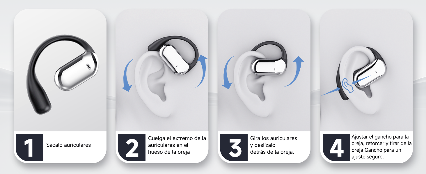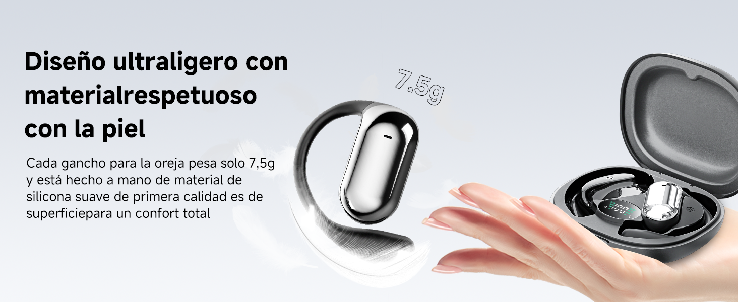 • Ligereza y Ajuste Seguro:Nuestros auriculares de conducción ósea son increíblemente ligeros. Fabricados con material de silicona suave de primera calidad. Con nuestro diseño original equilibrado por gravedad, los auriculares distribuyen su peso alrededor de tus orejas, reduciendo la presión en un solo punto. El sistema de soporte multipunto distribuye el peso uniformemente para evitar que se caigan, haciéndolos perfectos para correr, actividades deportivas, reuniones o al aire libre.