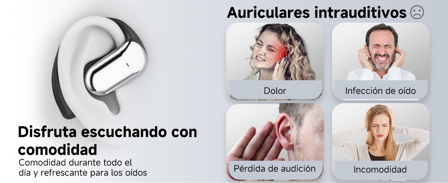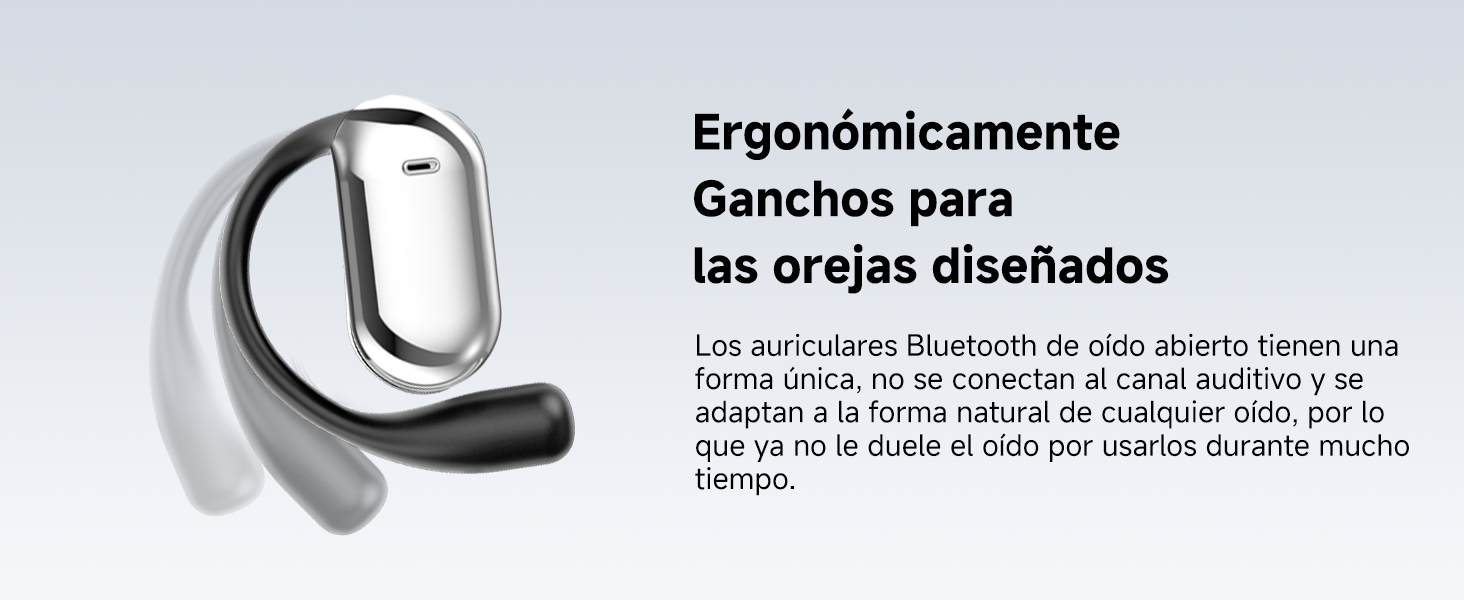 • Diseño Inmersivo de Oreja Abierta:Los auriculares oreja abierta cuentan con un diseño ergonómico revolucionario, permitiéndote disfrutar de tu música favorita mientras te mantienes consciente del entorno. Con estos innovadores auriculares inalambricos bluetooth deportivos, puedes escuchar sonidos externos claramente sin comprometer la comodidad. Su forma única evita la inserción en el canal auditivo, eliminando el dolor por uso prolongado.